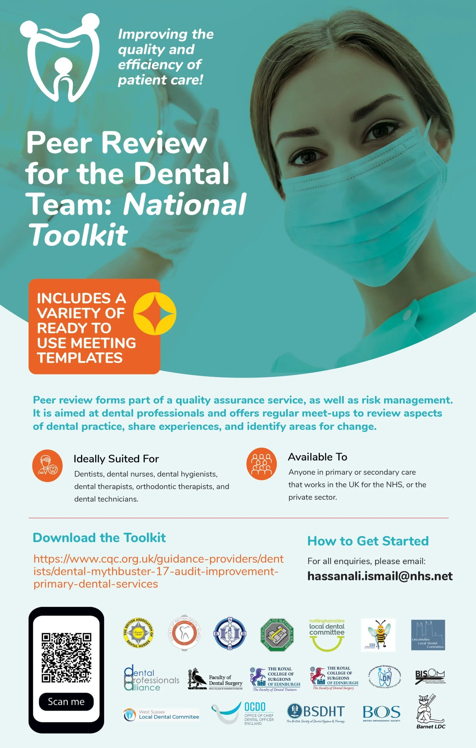 We hope that this toolkit will serve as a useful guide for NHS and private dental practices, community dental services, secure settings, secondary care providers and any member of the dental team intending to start a peer review group.
